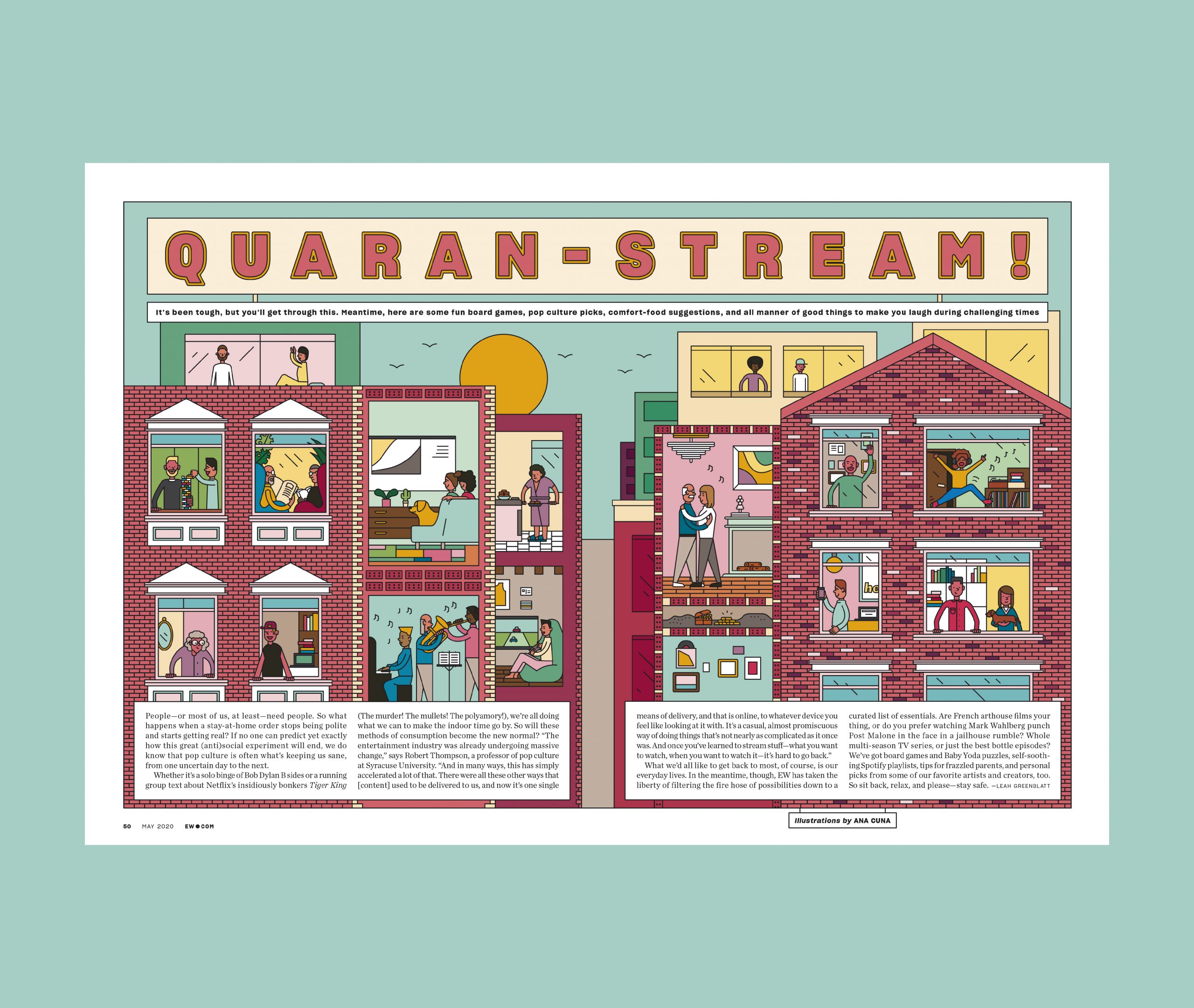 It’s an illustration project for Entertainment Weekly showing the Quarantine actions during Covid Crisis.